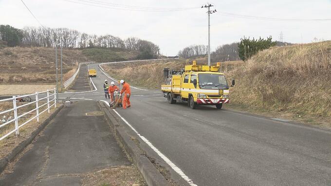 一方、郡山市は14日、交差点の四方、およそ100メートルの範囲で外側線や中央線の白線を引き直しています。