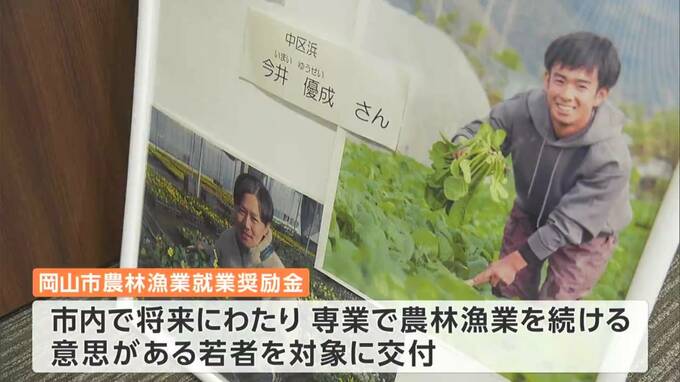 岡山市では、就業者の高齢化が課題となっていて、将来にわたって農林漁業を続けていく意思がある若者を対象に、毎年奨励金を交付しています。