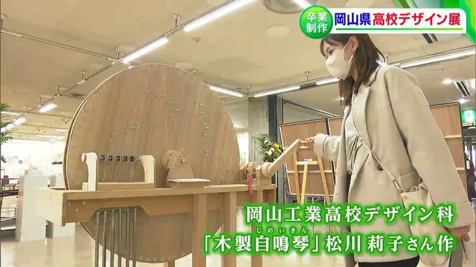 岡山県内でデザインなどを学ぶ高校生の卒業制作を集めた「岡山県高校デザイン展」が、岡山市北区の天神山文化プラザで始まりました。発泡スチロールやアクリル板サインペンなど、様々な材料で制作された個性的な作…