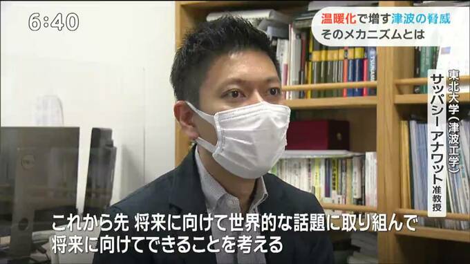 津波工学を専門とする東北大学のサッパシーアナワット准教授は、温暖化がもたらす津波への影響について研究しています。