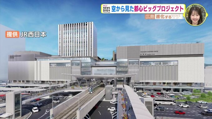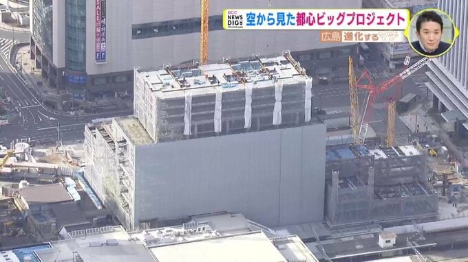 陸の玄関口となる新たな駅ビルは、地上20階・地下1階建てで、商業施設やシネコン・ホテルなどが入る予定です。この夏には、広電の駅前大橋線が乗り入れる中央部分の工事が本格化する見通しです。