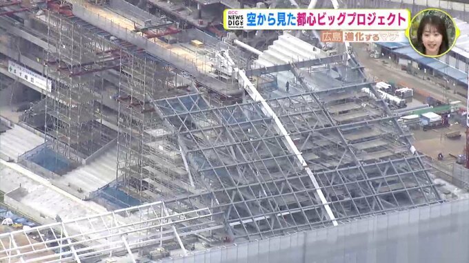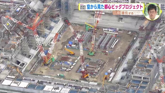 「ああ、かなり上の方まででき上がりつつあります。ちょうど今、中央の土が見えるところがサッカーのグラウンド、ピッチだと思うんですが、そこに何台ものクレーン車がありまして、そこからスタンドの躯体を作り上げていっている状況ですね」