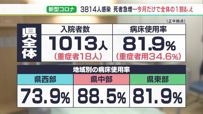 病床使用率は県全体で81.9%、県中部では9割に迫る深刻な状況が続いています。