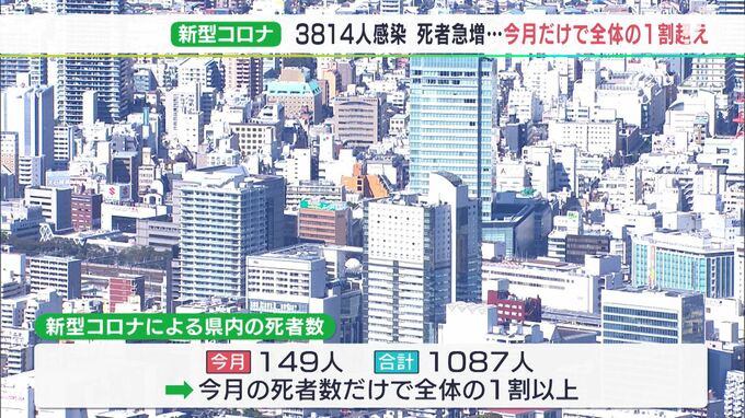 県全体で新たに13人の死亡が報告され、1月の死者数は149人となりました。新型コロナによるこれまでの県内の死者数は1087人で、1月の死者数だけですでに全体の1割以上を占めていることになります。