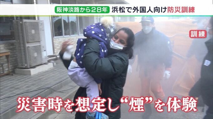 浜松市では1月17日、日本語教室に通う外国人が防災訓練に参加し、地震や火災などに備えて、自分自身で身を守る対処方法を学びました。<訓練>「地震です。机の下に隠れて下さい」防災訓練には、浜松市外国人学習…