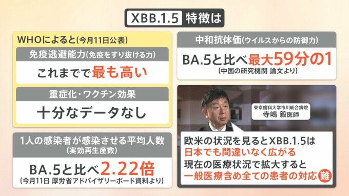 東京歯科大学市川総合病院 寺嶋毅医師「欧米の状況を見るとXBB.1.5は日本でも間違いなく広がる。現在の医療状況で拡大すると一般医療含めすべての患者の対応が難しくなる」