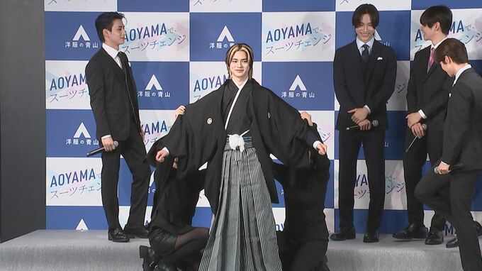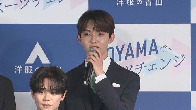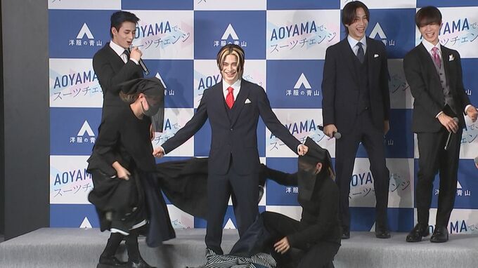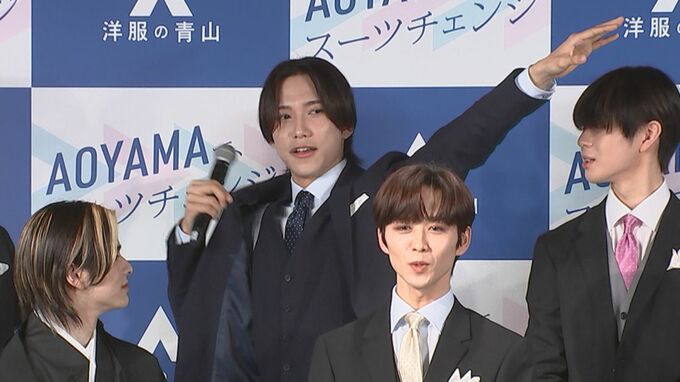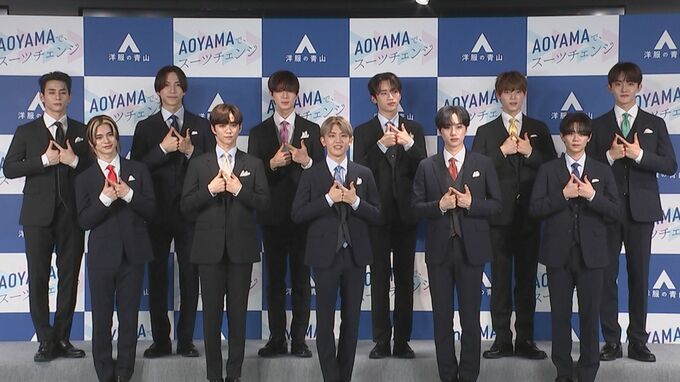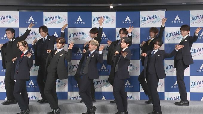 11人組グローバルボーイズグループ・INIが「洋服の青山 2023年フレッシャーズ新CM発表会」に出席。会場ではINIの新曲「New Day」に合わせ、スーツ姿でダンスパフォーマンスをする新CMがお披露目されました。