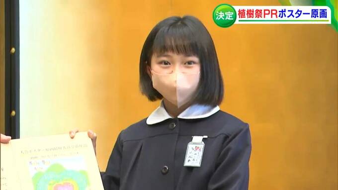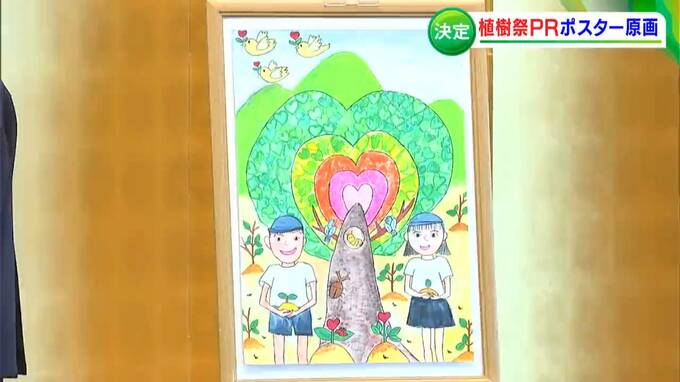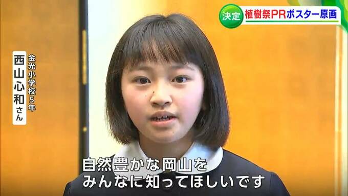 来年(2024年)春に岡山県で開かれる全国植樹祭をPRするポスターの原画が決定し、描いた小学生にきょう(18日)表彰状が贈られました。