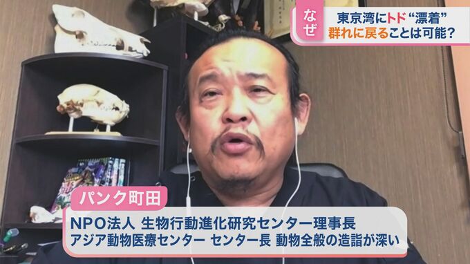 僕が思うには、やはり体調をちょっと崩して、群れについていく体力がなくて、ちょっと離れたところにいたら、いつの間にか東京湾に流れ着いたって感じなのかなと思います。