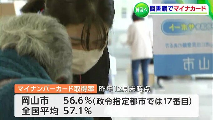 全国平均の取得率が約6割と伸び悩むマイナンバーカード。岡山市ではカードの利便性向上などを図ろうときょう(18日)から市立図書館での本の貸し出しに使えるようになりました。
