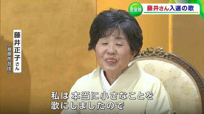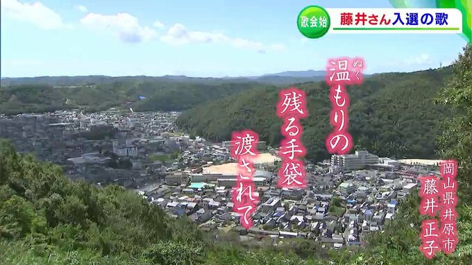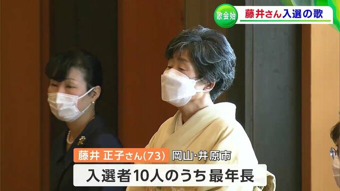 歌会始の儀は、天皇、皇后両陛下や皇族方が出席され、共通のお題で詠んだ歌を披露する宮中の伝統行事です。今年のお題は「友(とも)」入選者10人のうち最年長となった井原市の藤井正子(73)さんは、11年前に亡くなった夫を思い歌を詠みました。