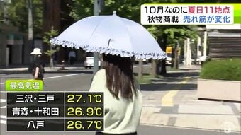 「異常ですよね…」秋なのに… 青森県内で『夏』思わせる暑さ続く 3日の最高気温は三沢市・三戸町が27.1℃など11地点で「夏日」に 街の人も「まだ衣替えができない…」洋服店にも影響が
