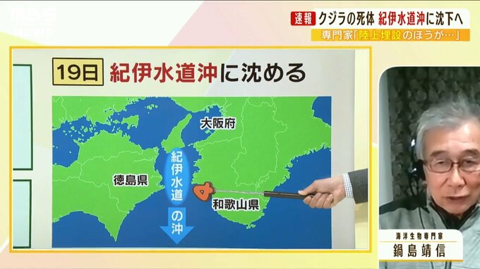ーー19日にクジラを紀伊水道沖に沈めるということなんですが、どれぐらい沖まで持っていく必要があるんでしょうか?
