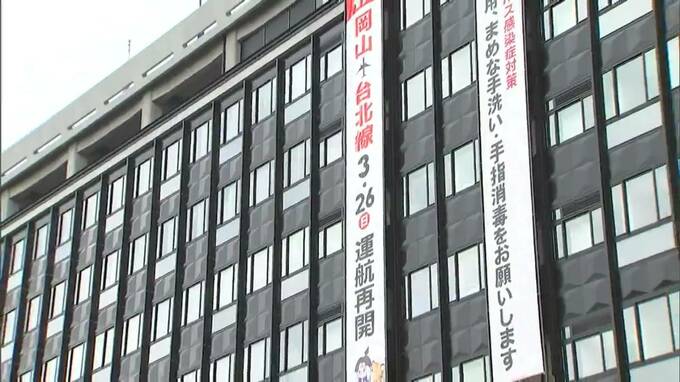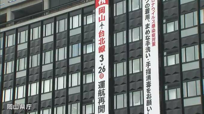 3年ぶりの運航再開が決まった「岡山ー台北線」をPRする懸垂幕が、岡山県庁などに掲げられました。
