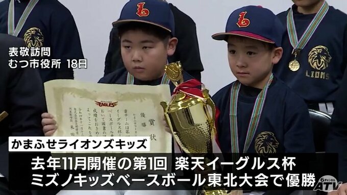 青森県むつ市の少年野球チームが2022年11月に行われた東北大会で優勝し、18日、市長へ大会での活躍を報告しました。第1回楽天イーグルス杯ミズノキッズベースボール東北大会で優勝したのは、むつ市の少年野球チー…