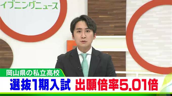 岡山県内にある21の私立高校の、選抜1期入試の出願状況がまとまりました。出願者数・出願倍率は前年度より減少しています。出願者数は2万7476人で、前年度から644人減少し、倍率は5.01倍です。各校の出願状況です…