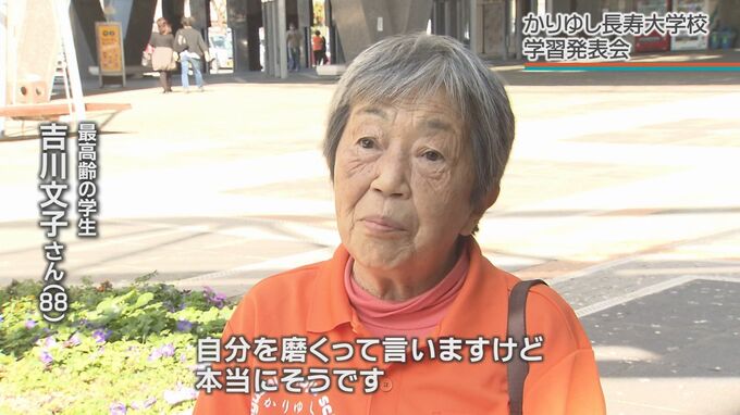 最高齢の吉川文子さん(88)「一番私がよかったのはクラブでとったお習字です。お習字っていいですね。自分を磨くって言いますけど、本当にそうです。冥土の土産ってことかもしれません。ありがとうございます」