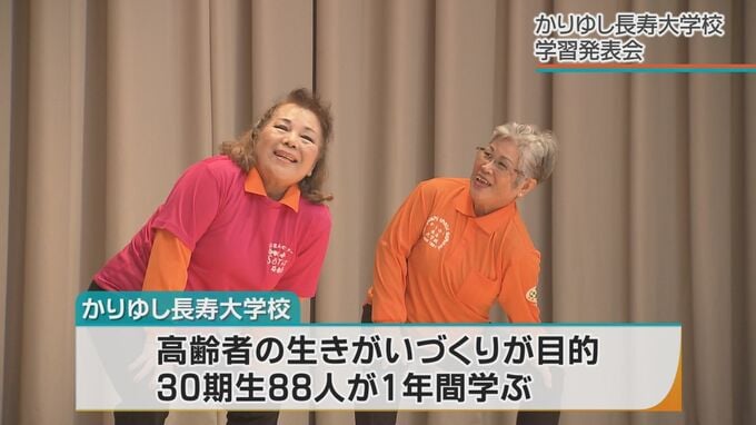 60歳以上の高齢者が入学できる『かりゆし長寿大学校』では学生たちのこれまでの学習の成果を披露する学習発表会が行われました。ここでは元気なお年寄りたちが沖縄の文化や歴史、またSDGsなどを学んでいます。