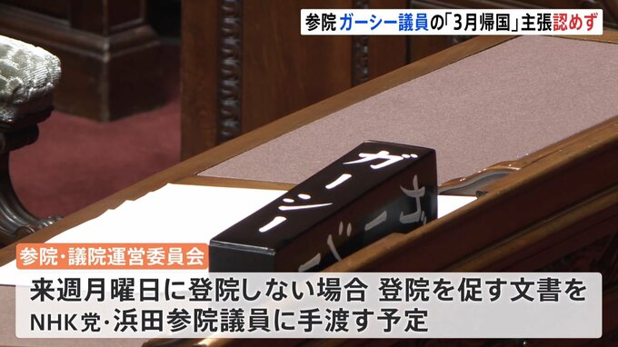去年行われた参院選で当選してから一度も登院していないNHK党のガーシー参院議員が3月上旬に登院する意志を示していることについて、国会では、ただちに登院するよう求めることを決めました。参議院の議院運営委員…