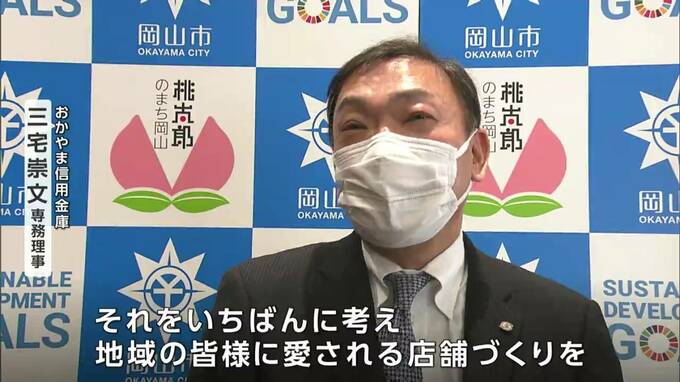 (おかやま信用金庫 三宅崇文専務理事)「face to face が信用金庫のモットーですので、それを一番に考え、地域の皆さまに愛される店舗づくりをこれからもしていきたいと思います」