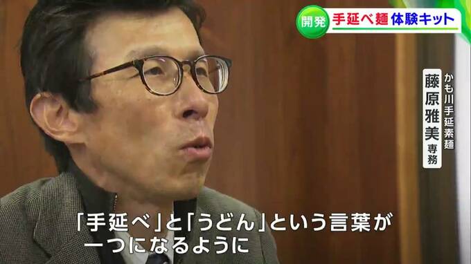 (かも川手延素麺 藤原雅美 専務)「どうしても『手延べ』というとそうめんになってしまいますし、うどんというと『手打ちうどん』とか『さぬきうどん』になってしまうので、『手延べ』と『うどん』という言葉がひとつになるように、どんどんPRしていきたいなと思っております。」