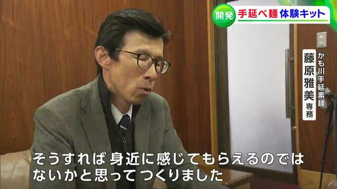 (かも川手延素麺 藤原雅美 専務)「こういった形で体験もできますし、最後のばして食べることもできるので、そうすれば身近に感じていただくことができるのではないかと思ってつくりました」