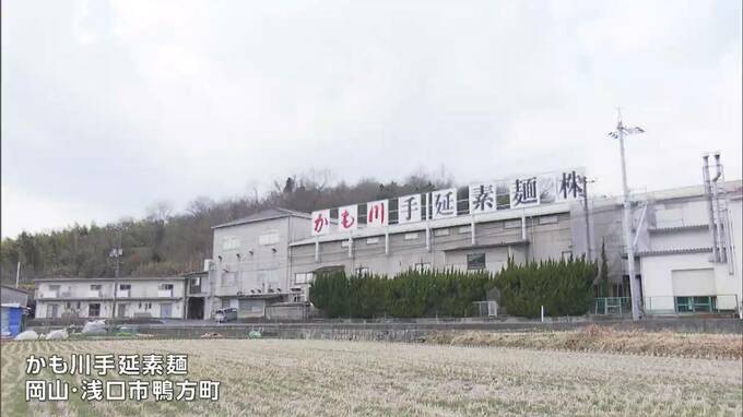 江戸時代末期から続く「手延べ麺」の産地、浅口市鴨方町です。かも川手延素麺では、約50年前からうどんを生産しています。