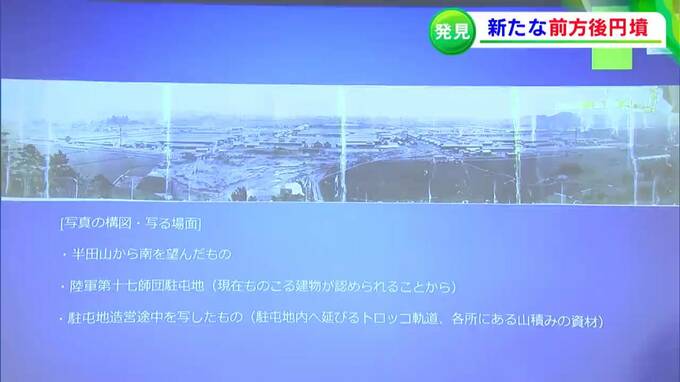 研究の結果、「土の盛り上がり方」や「円形状の土地」が見られることなどから、前方後円墳と認定。また何かを避けるようにゆるく曲がった道など、撮影当時の明治時代の「地割」の痕跡も、その存在を裏付けるといいます。