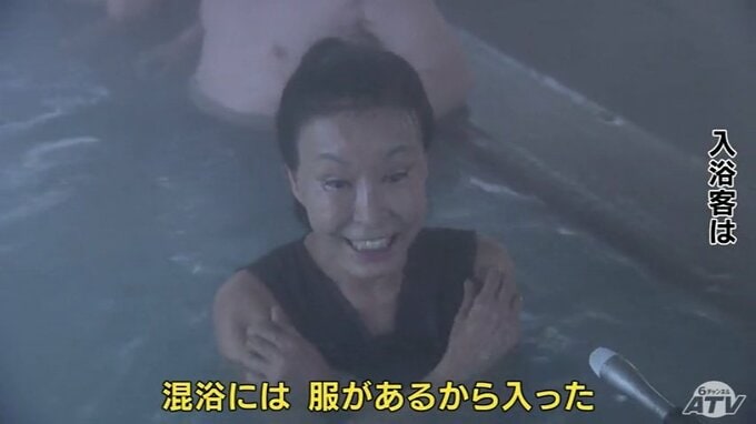 「(湯あみ着があるのは)いいです。安心です。混浴は服があるから入った。旦那と一緒に話もできるしいいです」