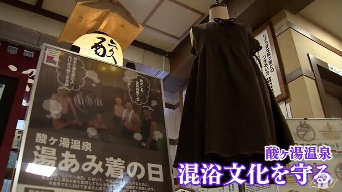 そして、20日は酸ヶ湯温泉の名物、ヒバ千人風呂で混浴文化を守るための取り組みも行われました。それが、入浴するときに男女とも、湯あみ着を身につけるというものです。近年は女性客を中心に混浴を避ける人も増えていて、湯あみ着の評判は上々です。