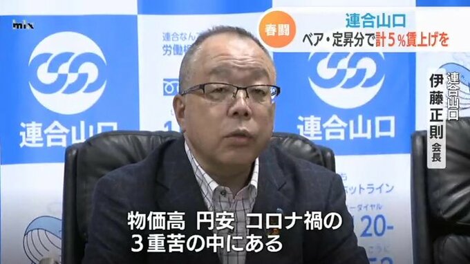 物価上昇が続いているなどとして、県内最大の労働団体・連合山口は今年の春闘で、定期昇給と合わせて5パーセント程度の賃上げを目標とする方針を発表しました。連合山口・伊藤正則会長:「物価高、円安、コロナ禍の…