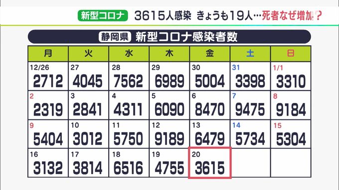 1月20日、静岡県内で新たに3,615人が新型コロナウイルスに感染したことが分かりました。