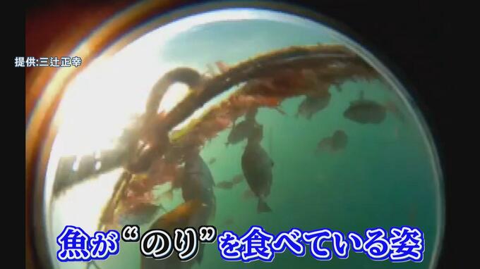 三辻さんが撮影した映像には、海中で養殖されている「のり」に魚たちが一斉に群がり、ついばむように食べている姿が捉えられていました。