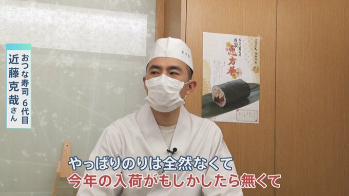 「おつな寿司」が取り引きしている仕入れ業者では、今年獲れたのりの在庫が少ない状態が続いているため、去年のものを卸すことも検討せざるを得ないということです。