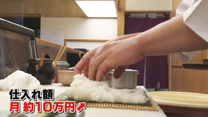 東京・六本木にある老舗の寿司店「おつな寿司」では、1か月に平均約6000枚ののりを使用していますが、仕入れ額が約10万円高くなってしまったそうです。