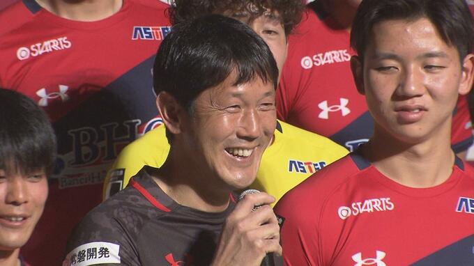 村主博正監督「(選手に)昨年も1試合1試合全力でという言葉を使っていますが、本心は一番上を目指せといつも思っています。優勝目指してみんなで頑張っていきたい」