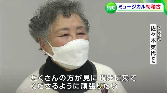 (歌唱指導 佐々木英代さん)「今度のミュージカルの雰囲気が少しみなさん垣間見れたのではないでしょうかね。楽しみです。たくさんの方が見に、聞きに来てくださるように頑張りたいと思います」