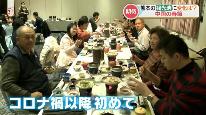 中国では4年ぶりに行動規制のない旧正月・春節を迎えていますが、熊本の観光地にも変化はあるのでしょうか?先週末、阿蘇市の温泉ホテルにやって来たのは台湾からの団体観光客です。この日は2組の団体、56人の台湾…