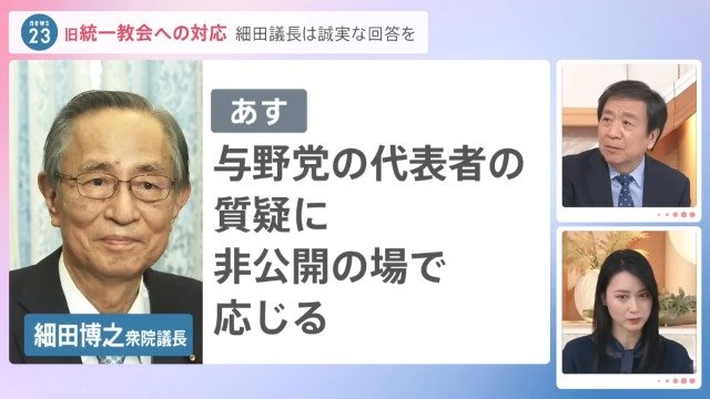 これは2022年で終わりはありませんよね。鶴保さんのケースのように次々と新たな接点が出てくる可能性もあります。なんと言っても細田議長ですよね。これまできちんと説明していません。