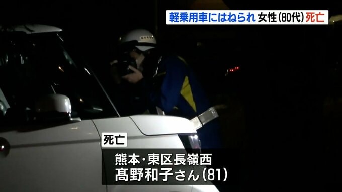 23日の夜、熊本市で80代の女性が軽乗用車にはねられ死亡しました。