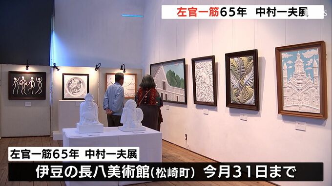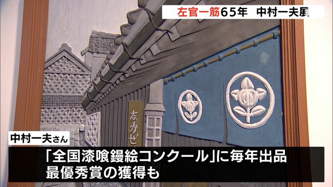 静岡県松崎町の「伊豆の長八美術館」で町内の現役左官職人、中村一夫さんの漆喰鏝絵の作品を集めた展示会が開かれています。