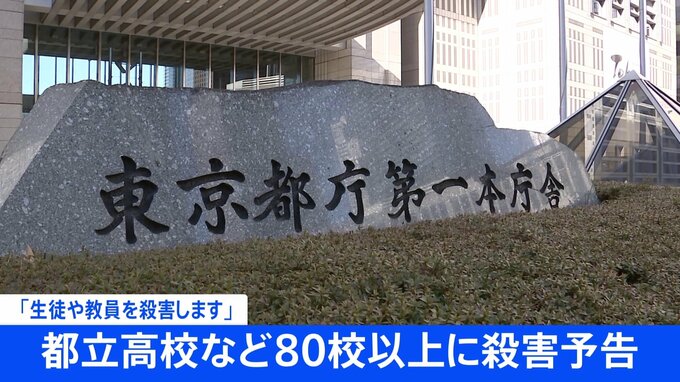 東京都によりますと、けさ早く、都立高校などに「生徒や教員を殺害します」という殺害予告が来たということです。殺害予告は都立高校など、およそ200校のうち80校以上にそれぞれFAXで送られていて、東京都は警察と…