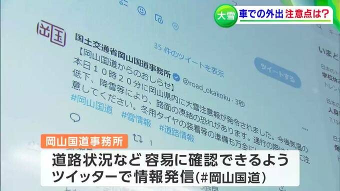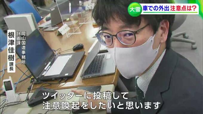 (岡山国道事務所計画課 根津佳樹課長)「大雪の注意報が発表されましたので、ツイッターに投稿して注意喚起をしたいと思います」
