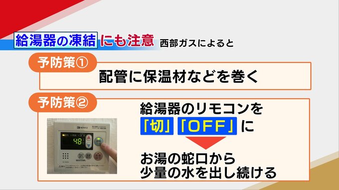まずはガスです。西部ガスはホームページで「給湯機」の凍結防止の対策を発信しています。