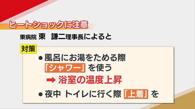 東病院の東 謙二 理事長によると「ヒートショック」は寒暖差が大きい風呂場やトイレなどで多くおこります。