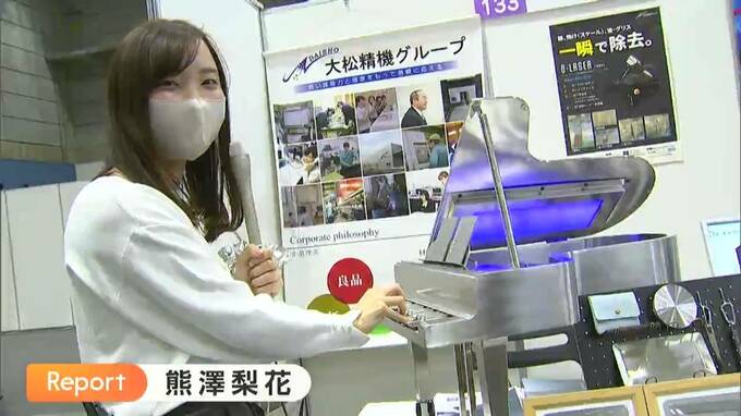 (熊澤梨花リポート)「こちらは一枚の金属板をレーザーで切断してつくったピアノです。実際に音を鳴らすこともできます」