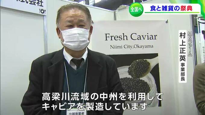 (MSファーム 村上正英事業部長)「高梁川流域の中州を利用して、キャビアを製造しています。ぷちぷち感がなくて、とろりとした本当に獲れたての感触で味わっていただけるのがうちの商品だと思います」