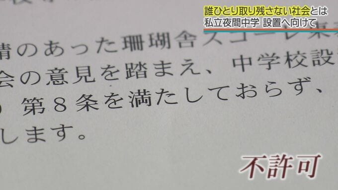 去年3月、夜間中学の活動をより充実させるため、私立の夜間中学としての設置認可を県に申請しましたが県の回答は『不許可』。校舎や運動場の面積が設置基準を満たしていないという理由でした。