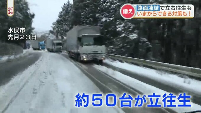 先月、水俣市では、路面凍結により約50台の車が立往生する事態に。15センチほどの積雪となったこの日の朝は、現場周辺の道路でチェーン規制が行われていました。