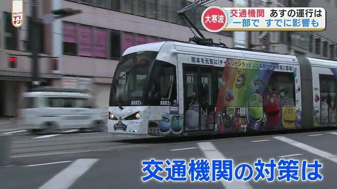 また、九州産交バスによりますと、あすは阿蘇市と高森町の一部路線を除き、路線バス・高速バスともに通常運行の予定ですが平地でも積雪が10センチを超える場合は運転を見合わせる恐れがあるということです。